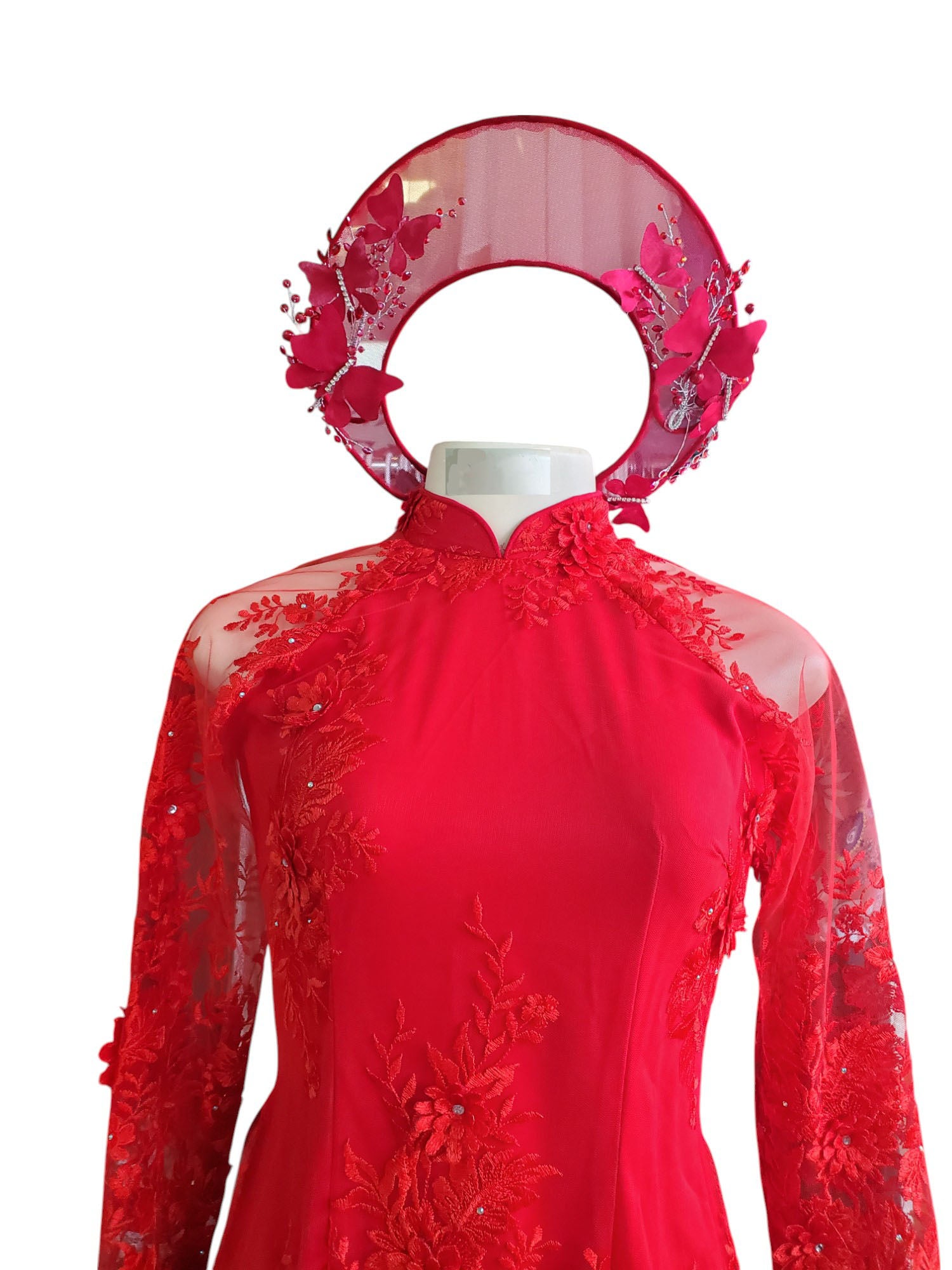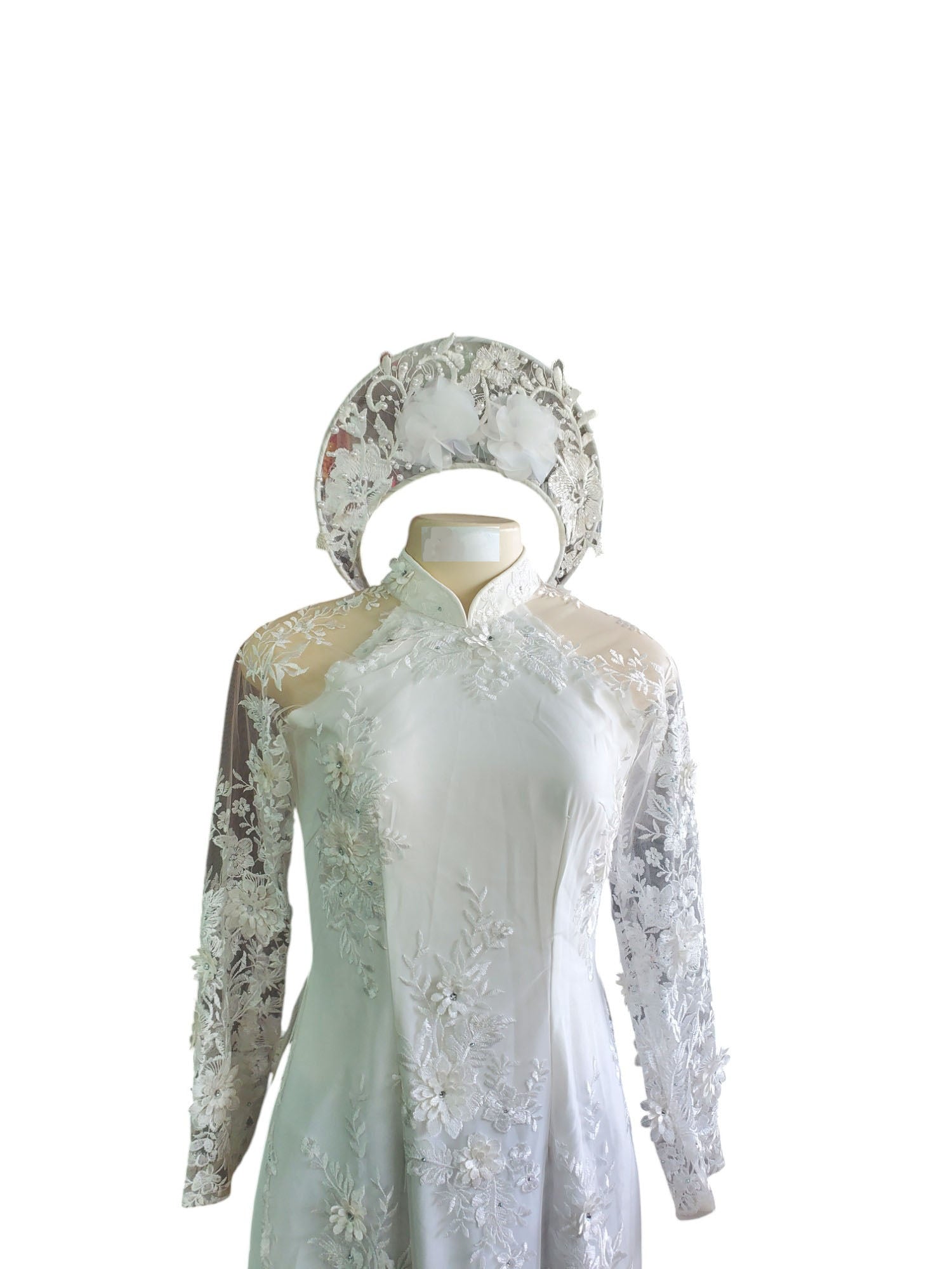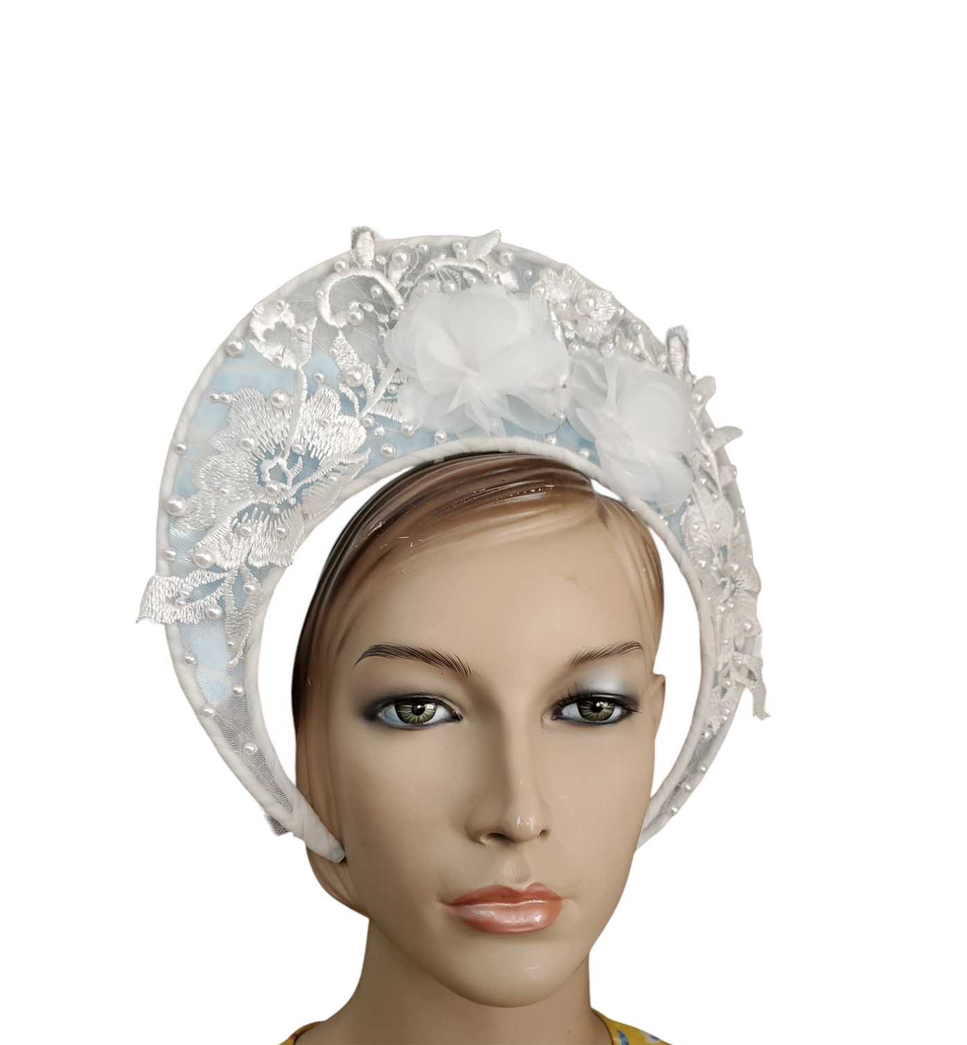 A modernized version of the traditional khan dong, this lightweight headband gives you all the glamour without the bother. The plush version is held together with an adjustable back tie, while the wireframe version is slightly flexible and made of a sheer semitransparent fabric.